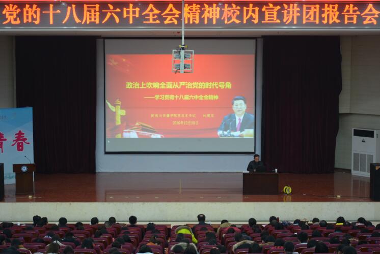 2016年20日晚上7点至8点30分,校内宣讲团成员、新闻与传播学院党总支书记杜建东在南区学术交流中心为我院党员干部和师生员工作了题为《政治上吹响全面从严治党的时代号角》的党的十八大六中全会精神专题宣讲报告。我院党总支书记李月华主持报告会。