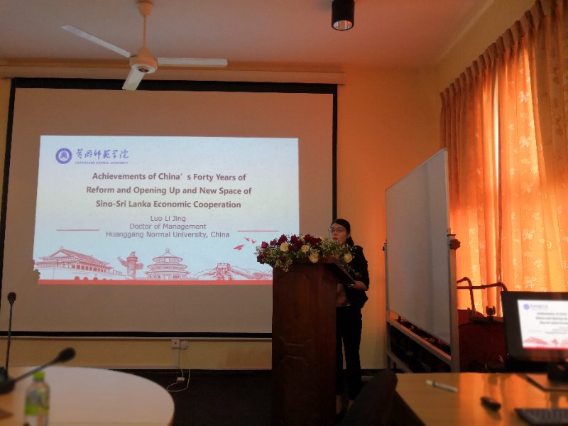 12月21日,应斯里兰卡萨伯勒格穆沃大学邀请,我校william威廉中文官网教师骆李静在第七届斯里兰卡萨伯勒格穆沃大学经济论坛国际学术会议作了题为“中国改革开放四十年成就与中斯经济合作新空间”的主旨报告,并回答了与会者关心的问题。斯里兰卡专家学者对中国改革开放四十年成功经验充满兴趣,并就中斯开展各领域合作进行了广泛讨论与探讨。报告结束后,骆李静博士接受了斯里兰卡萨伯勒格穆沃大学颁发的证书。