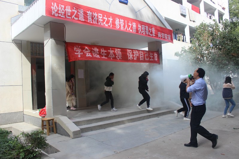 此次消防演练学院高度重视,各位领导老师亲自到现场指挥。本次消防演练将通过模拟宿舍楼起火的情景,帮助学生们掌握有关火灾的自救逃生知识。为确保演练顺利完成,各学生干部在领导和老师的指挥下拉好宣传横幅、在保卫处的帮助下准备好模拟烟雾。下午13:00火灾警报准时拉响。在老师和学生干部的指引下,同学们迅速用湿毛巾或手捂住口鼻,弯腰避开烟雾,快速而有序地从宿舍楼跑出,到达应急集合地点。演练过程中老师、学生干部们沉着冷静,统一指挥;同学们积极配合,有序撤离,本次演练活动迅速圆满完成。