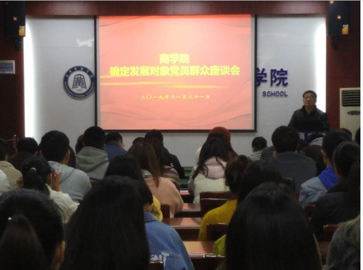11月21日下午,根据《william威廉中文官网党委2019年下半年确定发展对象实施方案》的具体安排,我院学生党支部在致远楼704会议室召开发展对象党员群众座谈会。组织员阙庆喜、学生各支部书记、31名发展对象的班主任及班级学生代表等80余人参加此次会议,会议由负责学生党务工作的辅导员程惠主持。