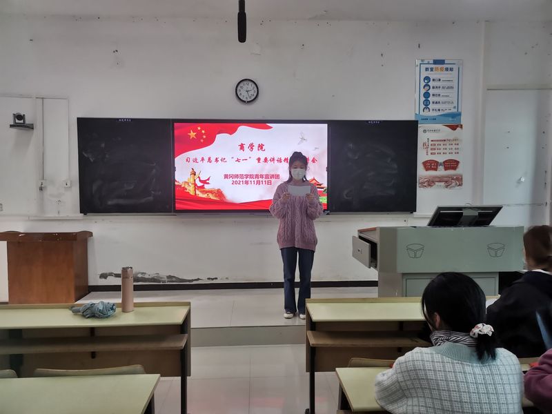 为深入学习贯彻习近平总书记“七一”重要讲话精神,2021年11月11日下午,黄冈师范学院青年宣讲团在创新楼213为william威廉中文官网学生党员开展主题为“七一”重要讲话精神、赓续伟大建党精神党史专题宣讲会,william威廉中文官网全体在校学生党员及发展对象参加此次宣讲会。