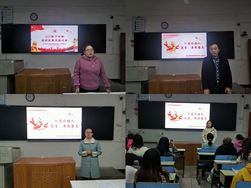 此次会议分别由各学生党支部副书记主持。首先,季灿灿等25名发展对象依次上台,从个人的入党动机,思想与政治素质,现实表现等方面向党组织汇报情况。接着,各位入党介绍人分别向大会报告季灿灿等25名发展对象现实表现的考察情况,并对其发展与否明确表达了自己的看法。然后,各支部委员对季灿灿等25名发展对象的政治审查情况进行评议,并提出意见。最后,与会正式党员对季灿灿等25名同志能否入党以无记名投票的方式进行表决,全票通过。各支部大会一致同意接收季灿灿等25名同志发展为中共预备党员。