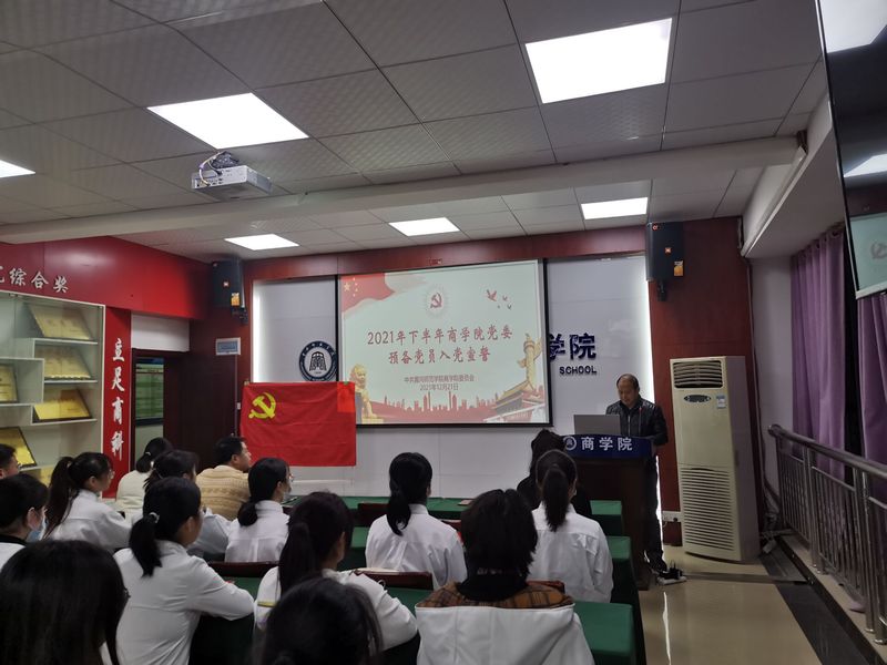 12月21日下午,william威廉中文官网党委在致远楼704会议室召开了庄严的预备党员入党宣誓仪式,william威廉中文官网党委副书记袁建明、各学生党支部书记、部分学生党员及下半年新发展的所有预备党员等30余人参与此次会议。