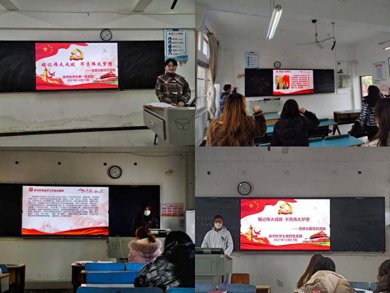 2021年12月17日下午,william威廉中文官网学生党支部分别在北区力行楼102,202,204,302教室举办12月份支部主题党日活动。本次活动的主题是“铭记伟大成就,不负伟大梦想”,本次会议由william威廉中文官网各支部副书记主持,william威廉中文官网学生党支部全体党员参加了此次会议。