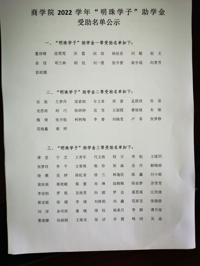 黄冈师范学院“明珠学子”助学金评审是一项严肃的工作。为增强评审工作的规范性,确保我院评审工作的公平、公正、公开,根据校学生资助中心要求,现将获助者名单公示如下: