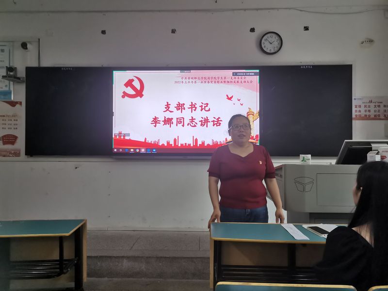 最后各党支部书记进行总结发言。其中第一党支部书记李娜做如下发言,她提到党员同志应该以身作则,在学习上不挂科,在志愿活动方面积极参与,谨慎发言,注意自己的一言一行,在班级中做好表率,团结群众。