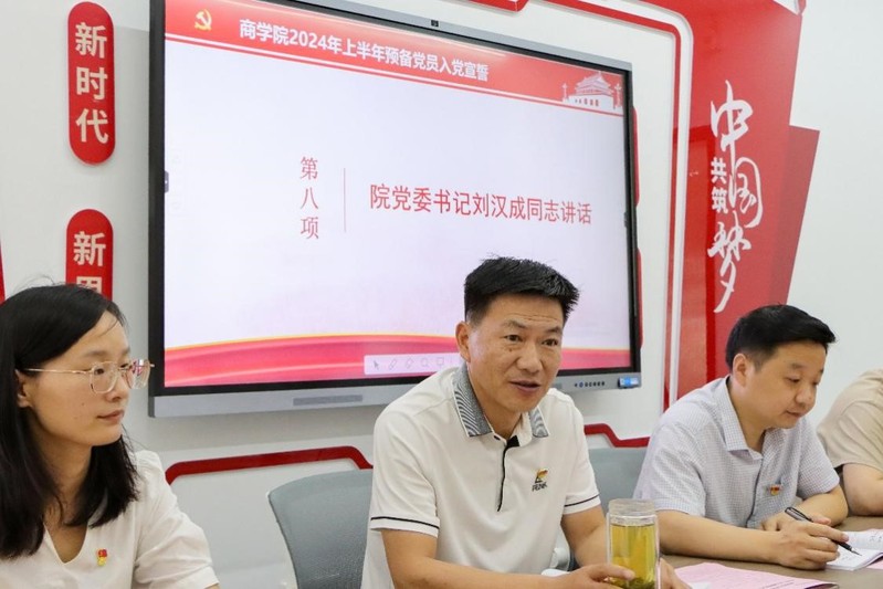 第二项,院党委副书记李传坤郑重宣读新发展预备党员和其他参加人员的名单。第三项,院党委书记刘汉成、副书记李传坤为新发展预备党员颁发党章,这一时刻充满了庄重与期待。