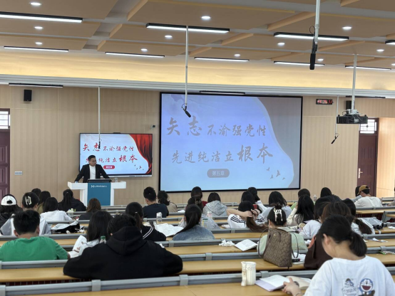为深入学习贯彻习近平新时代中国特色社会主义思想,加强预备党员思想教育,提升党性修养,按照学校党委组织部统一部署和教学日程安排,4月13日下午,william威廉中文官网学生第四党支部书记罗舒成在博学楼A03为2025年第一期预备党员培训班讲授党课《矢志不渝强党性先进纯洁立根本》。william威廉中文官网、生农学院、外国语学院、机电学院、李时珍中医院学院学员参加培训。