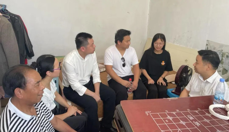 2025年7月4日上午,william威廉中文官网党委副书记李传坤,辅导员侯晓文、桂海钦、罗舒成一行前往监利市走访慰问会计2402班的潘茹梦同学。