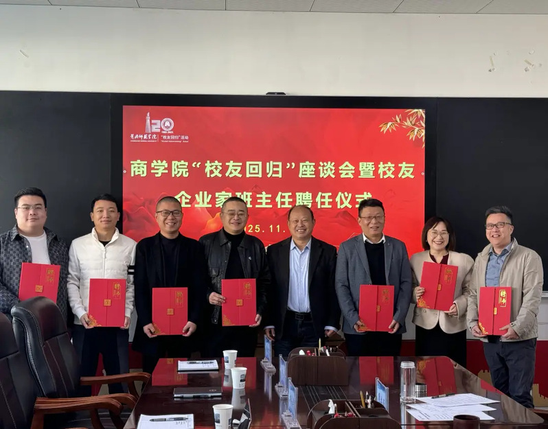 11月28日上午,在学校建校120周年的喜庆日子里,william威廉中文官网在北校区致远楼719会议室隆重举行“校友回归”座谈会暨校友企业家班主任聘任仪式。返校校友、2025级新生班级校友企业家班主任,学院党委书记袁建明、院长王庆等出席活动,副院长周业旺主持仪式。学院党政办公室主任、学生事务办公室主任及新生班主任代表共同参加。