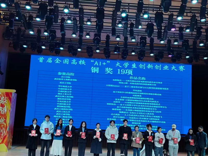 11月29日,首届全国高校“AI+”大学生创新创业大赛总决赛在中南民族大学圆满落幕。经过激烈角逐,我院国贸2402班王宸程作为队长,音乐学院张晓晗作为汇报人,方嘉、杨鑫、肖越、陈锦瑞等同学为核心成员,周海琼、王庆、周业旺、郑永良老师共同指导的参赛项目《温菇智新——食用菌AI种植链智控系统开发与应用》凭借其创新的技术应用与显著的产业价值,荣获“全国铜奖”,展现了我院在赋能传统产业转型升级与服务地方经济发展中的积极探索与硬核实力。