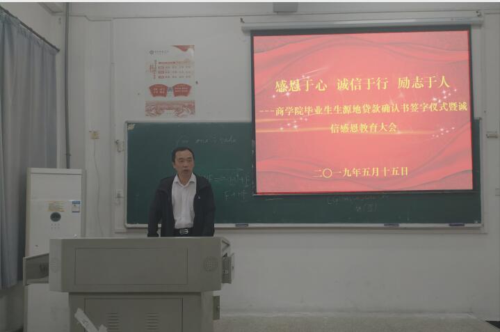 此次会议由高可欣主持。大会第一项,汪继东老师发言,首先他对即将毕业的同学表示殷切的希望和衷心的祝愿,然后为大家简短的介绍了诚信还款的相关内容,并指出召开大会的意义所在:一,生源地助学贷款是国家政策的优惠,同学们要牢牢抓住其机会,为走向社会做好充足准备;二,讲诚信是为个人的美好前程做好保障,希望同学们毕业后可以自食其力,脚踏实地,诚信做人;三,希望同学们在毕业后要学会感谢社会、回报社会,做一个有益于社会的人,争当社会的先进青年。最后,老师希望毕业生树立先就业后择业的观念,在毕业之前找好中意的就业单位。期间,即将毕业的学生代表张乙丹、刘玉川上台发言,他们表达了对大学生活的怀念,感激国家给予的机会,感谢党和学校的关怀,感谢一直在他们身边支持他们的老师和朋友,他们会不忘自己肩上的责任与重担,用自己的点滴行动回报社会。最后,大会在同学们的签字后圆满结束。