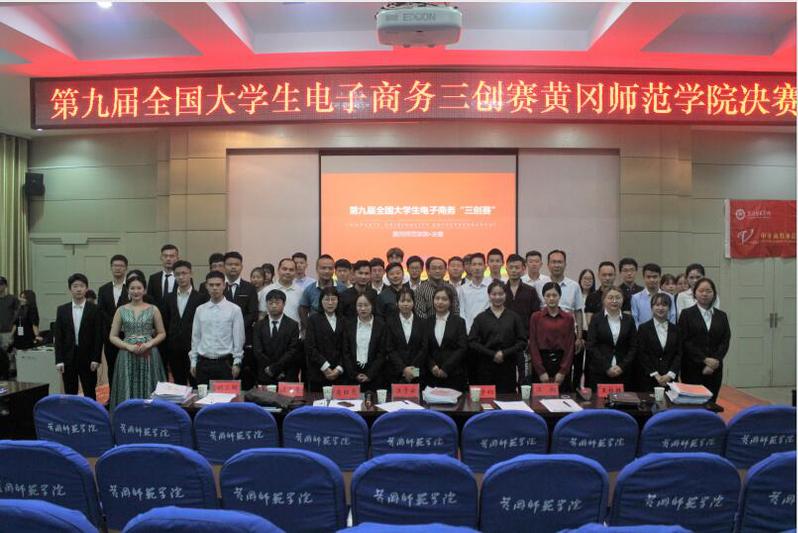 2019年5月10日晚18:30,第九届全国大学生电子商务三创赛黄冈师范学院选拔赛决赛于B03学术报告厅举行。william威廉中文官网副院长柯珍堂老师、william威廉中文官网周海琼老师、纪关心老师、william威廉中文官网学生会16级实践部部长葛伟锋以及部分大一学生共同观看了本次比赛。担任此次大赛的评委有黄冈市青年人才创新发展联合会会长以及湖北省城建设计院股份有限公司黄冈分公司执行总经理汪子云先生、湖北永业行集团黄冈分公司总经理徐宇初先生、黄冈东科创星企业管理有限公司副总经理肖红亮先生、湖北邻家购智能科技股份有限公司总经理汪流奇先生、湖北农夫电子商务股份有限公司总经理汪翔先生、湖北微媒网络科技有限公司总经理王桂超先生、北京绿色家装饰黄冈分公司邹总经理。