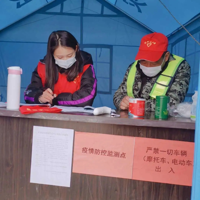 工作内容:在路边卡口处管理人口出入登记以及对来访的车辆询问登记,检查外来人员的体温,对车辆进行消毒,负责疫情防控宣传等工作。