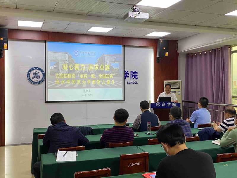 9月17日下午,校党委副书记、校长陈向军到我院704会议室作题为《凝心聚力 追求卓越 为加快建设“全省一流、全国知名”高水平师范大学而努力奋斗》报告