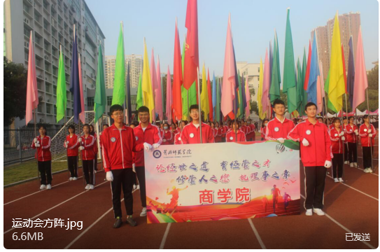 开幕式上,我院的彩旗队方阵作为第一个代表队出场,他们整齐的步伐,嘹亮的口号声,向大家展现着商院学子们朝气蓬勃的精神面貌和青春活力的风采;参与广播体操表演的同学们以整齐划一的动作,展示着我院学子团结协作,奋发图强的优良品质。