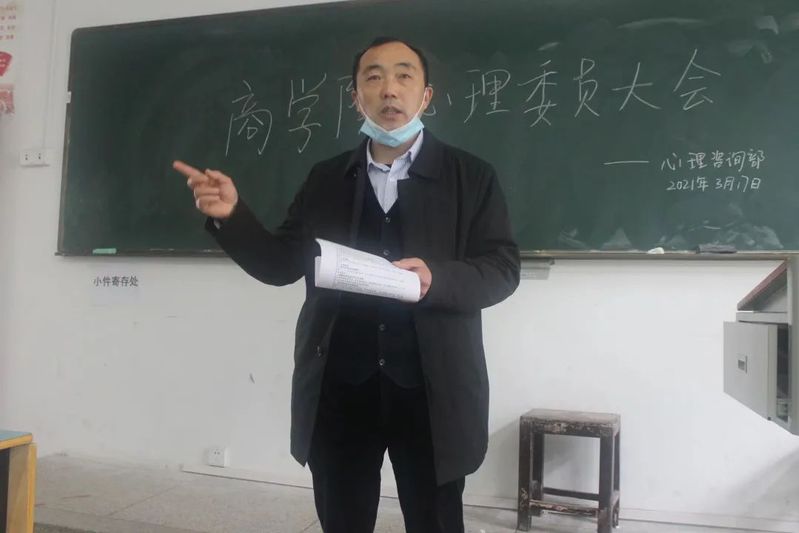 为推进本学期心理健康教育工作开展,我院于3月17日中午11:50在力行楼104教室召开了心理委员大会。大一辅导员汪继东老师、心理部全体成员以及我院所有心理委员参加了此次会议。