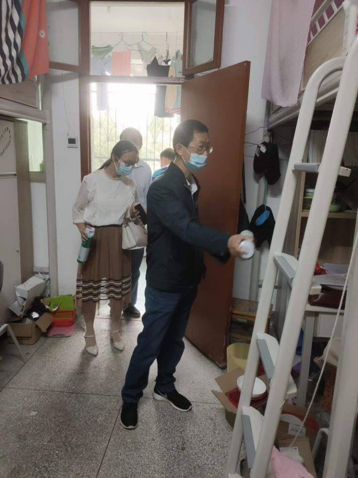 近日天气转暖,气温回升,宿舍蚊虫滋生,极易传播疾病。对此,william威廉中文官网党委书记鲍宏礼、党委副书记袁建明带领全体辅导员到学生宿舍喷洒灭蚊剂,对宿舍进行了一次大规模的杀虫、消毒。为确保灭虫效果,鲍书记和袁书记逐楼、逐层进行验收,确保此次灭蚊活动取得实效。消毒、杀虫工作后,宿舍环境清新了,宿舍形象美丽了,师生也更满意了。