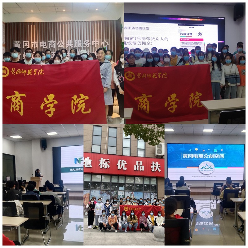 为让学生进一步拓宽电商知识,掌握电商运营,提升电商技能,激发学习兴趣与创业热情,2021年11月4日下午,在电子商务教研室主任周海琼老师的带领下,william威廉中文官网2020级与2021级电子商务专业的学生到湖北农夫电子商务公司、黄冈市电子商务公共服务中心、黄冈市地标优品扶贫馆、大别山网红基地进行了参观学习、网络直播培训与体验。