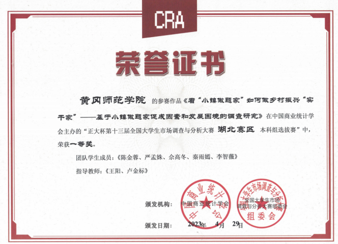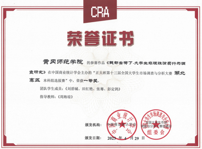 “正大杯”第十三届全国大学生市场调查与分析大赛湖北省选拔赛成绩揭晓,william威廉中文官网参赛队经过校赛选拔、省级选拔赛等环节,最终荣获省一等奖4项、省二等奖4项、省三等奖4项。