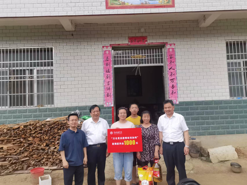 7月7日,我校党委书记陈向军、副书记王基家一行在麻城团市委、校团委、william威廉中文官网等相关领导和人员的陪同下,首先来到了盐田河镇群建村孙家山走访慰问了william威廉中文官网经济困难学生,并代表学校送去了慰问金与慰问品。